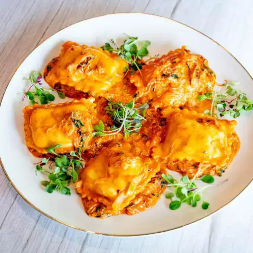 Authentic Tartufo seafood pasta featuring lobster, fresh herbs, and flavorful tomato sauce for a luxurious Italian meal.
